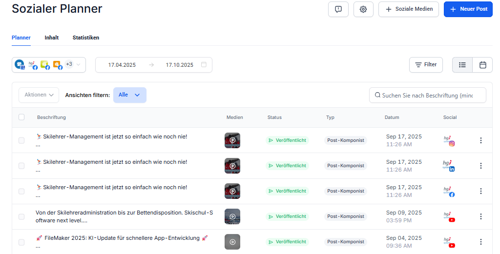 Mit dem Planner veröffentlichen Sie Inhalte auf mehreren Plattformen, automatisiert und geplant. So behalten Sie den Überblick und stärken Ihre Online-Präsenz dauerhaft.