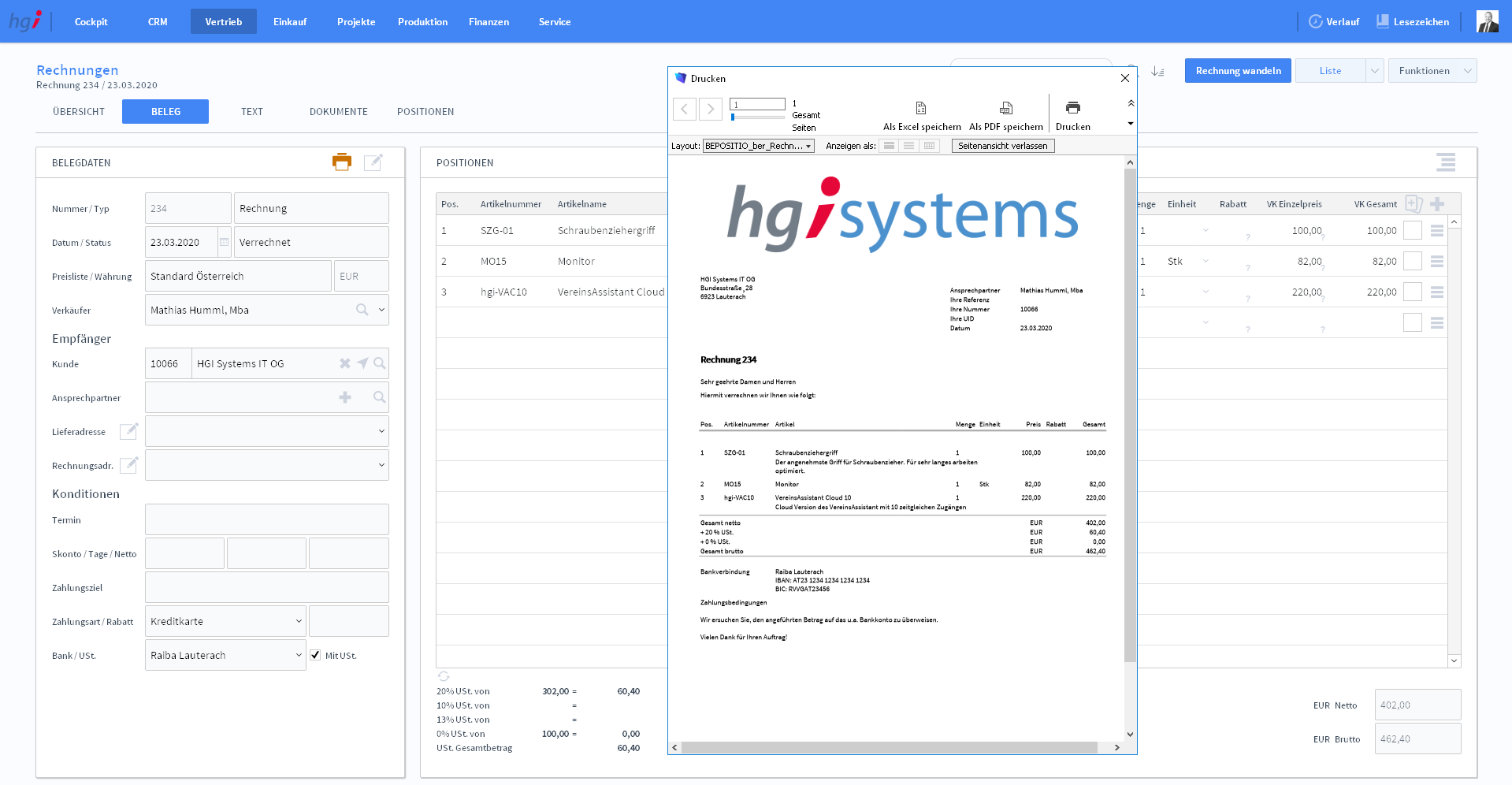 Einfache Artikelsuch- und Einfügefunktion in das Verkaufsdokument erleichtern die Auftragsabwicklung. Sie können Verkaufspositionen ergänzen, verändern, Rabatte einfügen oder Preise überschreiben – ganz flexibel, wie Sie es benötigen.