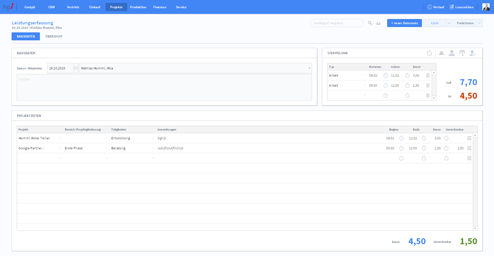 Projektmitarbeiter können über das Modul Leistungserfassung auf die einzelnen Projekte ihre Zeiten buchen und ihre Tätigkeiten dokumentieren sowie mit einem Gliederungspunkt aus dem Projektzeitplan verknüpfen.
